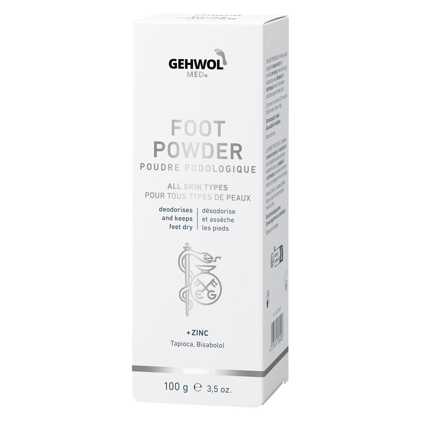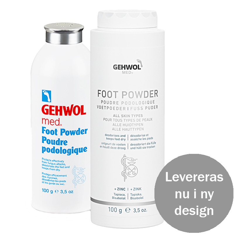 Gehwol med® Fotpuder som innehåller de verksamma substanserna tapiokastärkelse, mikroniserad zinkoxid och bisabolol förhindrar fotlukt och fotsvett. Clotrimazol skyddar mot svampangrepp. Som en säkerhetsåtgärd bör produkter som innehåller clotrimazol inte användas under de första tre månaderna av en graviditet. Tack vare den låga absorptionen vid behandling av avgränsad yta, kan Gehwolprodukter som innehåller clotrimazol användas under amningsperioden.Användning: Pudra din fötter en gång om dagen med Gehwol Med Fotpuder, om möjligt efter ett fotbad med Gehwol Foot Bath. För bästa resultat pudra även dina sockor med Gehwol Med Fotpuder.