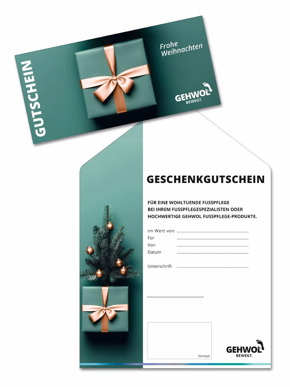 Presentkort som viks ihop till ett kuvert. På insidan av kuvertet kan man fylla i behandling eller belopp som presentkortet gäller för.