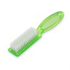 En mjuk nagelborste i plast, som inte skadar nagelbanden. Vita strån av nylon, som mjuknar vid spolning under ljummet till varmt vatten.