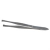 En snedställd rostfri pincett med räfflad yta för bra grepp.