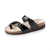 Pantolett av flip-flop modell med tåavskiljare i naturmaterial. Vid val av storlek, skall man beakta att ingen del av foten ska komma upp på kanten av fotbädden, ta i så fall en större storlek. Fotbädden är tillverkad av äkta naturkork och naturlatex, och belagd med ett tunt lager starkt mjukt oxläder. Sulan, som är anatomiskt utformad, är ca: 12 mm högre vid hälen än vid tån, vilket motsvarar en normal promenadsko. Tack vare skons inbyggda hälkudde, kan man stå och gå länge på hårda golv utan att bli trött. Fotbädden är även uppbyggd under tålederna för att ge ett bra grepp. Ovanlädret är  fritt från PCP, AZO-färgämnen och andra farliga garvnings- och beredningsämnen.