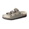 Pantolett i naturmaterial med tre remmar. Vid val av storlek, skall man beakta att ingen del av foten ska komma upp på kanten av fotbädden, ta i så fall en större storlek. Fotbädden är tillverkad av äkta naturkork och naturlatex, och belagd med ett tunt lager starkt mjukt oxläder. Sulan, som är anatomiskt utformad, är ca: 12 mm högre vid hälen än vid tån, vilket motsvarar en normal promenadsko. Tack vare skons inbyggda hälkudde, kan man stå och gå länge på hårda golv utan att bli trött. Fotbädden är även uppbyggd under tålederna för att ge ett bra grepp. Ovanlädret är  fritt från PCP, AZO-färgämnen och andra farliga garvnings- och beredningsämnen.