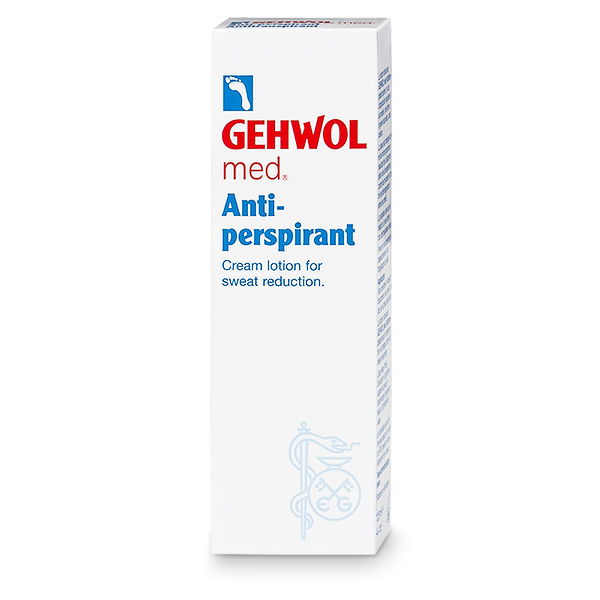 Gehwol med® Antitranspirant är en kräm som vid regelbunden användning leder till torrare och luktfria fötter. Foten skyddas mot svettnedbrytande mikroorganismer, fotsvamp och klåda mellan tårna. Svettbildningen minskas och doftbildningen förhindras. Samtidigt motverkas sprödhet och en stark uttorkning av huden. GEHWOL med® Antitranspirant Cremelotion reducerar svett och skyddar mot fotsvettslukt. Aloe Vera, avocadoolja och glycerin vårdar huden. Aluminiumchlorohydrat reducerar svettbildningen. Zinkricinoleat tar bort lukt och Natrium-PCA skyddar huden mot uttorkning.