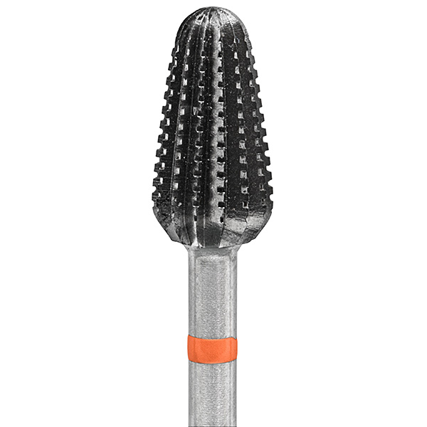 Metallfräsare med päronformat grovt korshugget sliphuvud.