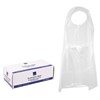 Engångsförkläde av transparent plast med präglad yta och utan ärm. Med nackband och knytband i ryggen. Används som skydd för användaren där hög hygienisk standard behövs.